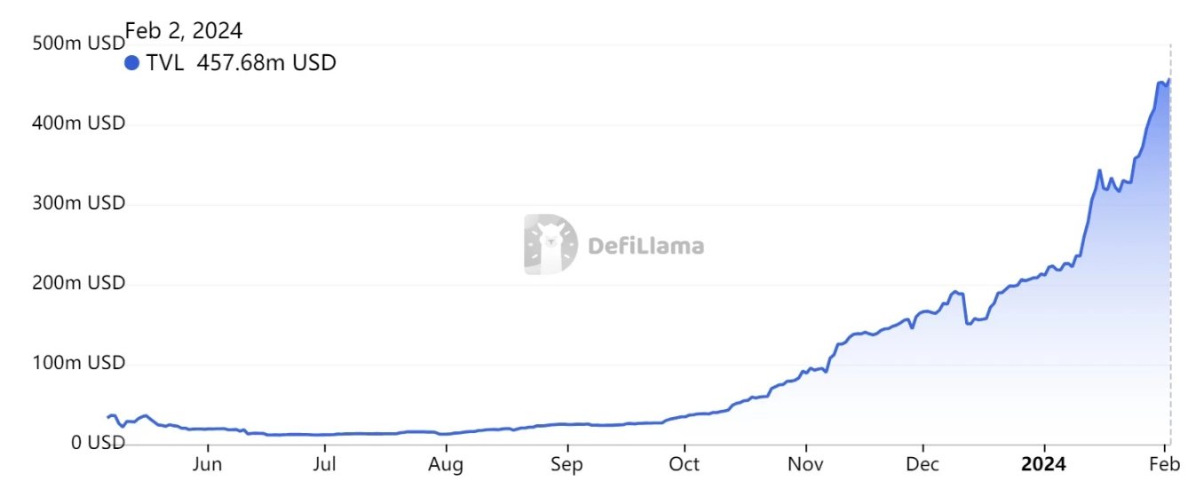 交易、借贷协议是所有链生态发展的基石,前者是用户的基本需求,而后者满足了用户的流动性、杠杆、对冲等多样化需求。近期,Sui 生态迎来了爆发增长, 1 个月前 Sui TVL 突破 2 亿美元,相较 9 月份其 TVL 增长近 500% ,而就在上周 TVL 再次爆发增长突破 4 亿美元。