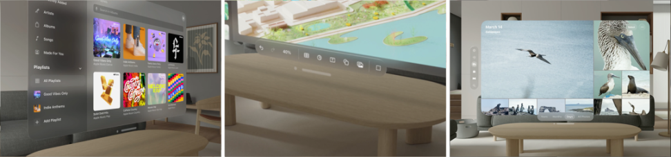 在与同事合作时,用户可以通过 Apple Vision Pro 加入 Webex、Zoom 和 Microsoft Teams,创建终极会议体验,多个窗口和共享内容可以填满用户周围的空间。成千上万的流行生产力应用程序在发布时也与 Vision Pro 兼容,如 Slack、Notion、Todoist 等,它们是日常工作流程中重要的一部分。